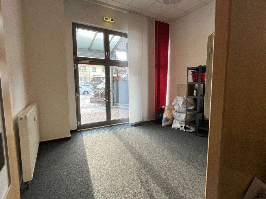 Die kleine Ladenfläche ist mit einer internen Wendeltreppe mit einer Büro- oder Praxisfläche verbunden und befindet sich in einem Geschäftszentrum direkt neben dem Eingang eines Supermarktes. Alle Einkaufsmöglichkeiten des täglichen Bedarfs sowie Cafés und Restaurants befinden sich vor Ort. Die Fläche ist in die 41m² große Ladenflächen mit getrennten Toiletten im EG und 3 darüber liegenden Büroräumen und Teeküche im 1. OG unterteilt. Die Ladenfläche ist stufenlos erreichbar und bietet ein Schaufenster.